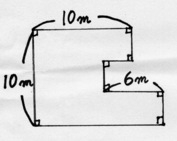 下の図の外周(まわりの長さ)は、何メートル?