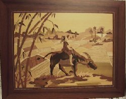 ↑木片の組み合わせによる伝統的絵画 ![]() ![]() 少数民族手織りの布による財布。