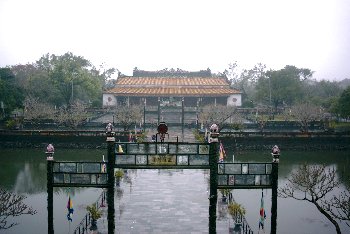 ベトナム中部のフエはベトナム最後の王朝グェン王朝(Nguyen)の都があった町です。グェン王朝は1802年から1945年まで続きました。にぎやかな南部の町並みとは少し違い、古き良きベトナムの香りがする町と言えるかも知れません。実際、陽気な南部のベトナム市民と比べて、フエの人々は人懐こくて優しい人が多いと言われています。 フエの町はフーン川を挟んでフエ王宮側と新市街地に分かれています。ホテルや旅行社などの施設は新市街地にあり、グエン王朝の王宮や古い店や建物は、旧市街にあります。このため、海外から来た観光客は新市街にあるホテルに宿泊し、タクシーなどを利用して旧市街に行き、王宮や宮殿博物館などを見学するようになります。 ハスの花が浮かぶ堀に囲まれた王宮の正午門をくぐると、橋を渡って大和殿にいたります。遥かな昔と思いがちですが、1世紀から2世紀ほど前までは、この王宮がベトナムの政治の中心として使われていたのです。ほんの少し神秘的な心持で大和殿を見学すると、広い広い王宮の内部にいたります。急ぐ旅でなければ、半日くらいの余裕を持って見学をすると良いと思います。 王宮のそばにある宮殿博物館も、とても興味深いグエン王朝の家具や衣装などの展示を行っていますので、是非覗いて見て下さい。その横にある歴史博物館には、フエの歴史が写真や展示品で紹介されています。前庭にはベトナム戦争で実際に使用された戦車や大砲などの実物が展示されていますので、興味のある人はどうぞ。 ![]() また、グエン王朝の歴代の皇帝が作り上げた廟もフエの郊外に点在しています。中でも状態よく保存されているのが、トゥードゥック帝廟、カイディン帝廟、ミンマン帝廟です。これらの皇帝の歴史はこちらを参照してください。 各廟へのツアーは、ツアー会社やホテルなどで手配できます。また、ハノイやホーチミン市の旅行社でも手配できます。一日のツアーになりますが、フエ観光の目玉ですから是非見学することをお勧めします。 ところで、せっかくフエに来たのですから、是非フエ料理を味わって帰ってください。お勧め料理のは、フエ王宮料理が一番ですが、それ以外にも、フエ独特のお惣菜単品料理は美味しいものが沢山あります。小皿で出てくるものが多いので、ビールのつまみにもぴったりの料理だと思います・・・(笑。フエ料理の参照ページはこちら。 <フエへの行き方と旅行アドバイス> ハノイやホーチミン市からは飛行機で行きます。そしてフエ空港から市街地まではタクシーで20分程度の距離になります。ベトナム航空 冬のフエは気温も低く、天候の悪い日が多いので、長袖衣類や雨の対策をあらかじめしておいたほうが良いと思います。 ![]() フエの見所: 1)グェン王宮(Dai Noi):中国の王宮建築の様式を取り入れた王宮。戦争中に破壊されたかしょもありますが、今でも当時の王朝の雅さを偲ぶことが出来ます。敷地が広いので、見学には半日程度の時間を見ておくと良いと思います。 2)フエ宮殿美術博物館(Bao tang My thuat Cung dinh Hue):グェン王宮の宮廷で使用された物を展示しています。王室の家具や装飾品などを見ることができます。 3)ミンマン帝廟(Lang Minh Mang):フエ市内からフォーン川を12km下ったところにある。1841年に建造され、美しい庭園や建築が見所です。 4)トゥドック帝廟(Lang Tu Duc):旧市街からミンマン帝廟へ向かう途中に有る。1867年に建造されました。 5)カイディン帝廟(Lang Khai Dinh):1931年建造された西洋風のデザインを取り入れた廟。完成までに12年かかりました。 <フエ観光のための参照> フエ旅行記はこちらを参照ください。 フエフォトツアー1:2 ホテル案内
