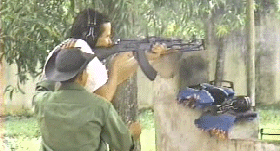 米国人観光客に射撃を教えるベトナム軍兵士。