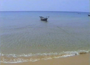 静かな漁村の波打ち際。