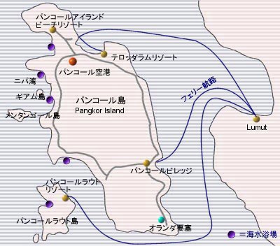 沢山の自然が残る美しいビーチのリゾートアイランドです。 ![]() パンコール島は、マラッカ海洋の中にあり、北のペナン島と南のマラッカのおおよそ真ん中くらいにある小さな島です。およそ8平方キロメートルの広さの島には2万5千人の住民が住んでいます。 住民のほとんどが、イカやアンチョビなどを獲る漁業で暮していましたが、近年になってリゾート開発が始まり、リゾートホテルやリゾートビーチが島に造られるようになりました。海の美しさが売り物のリゾートビーチは、島の西北部に点在しています。 島の中心はパンコールビレッジで、マレー半島のルムッ(Lumut)とフェリーで連絡されています。(およそ35分の距離です)。島の北部のパンコールアイランドビーチリゾートと、テロッダラムリゾート、そして本島の南にあるパンコールラウト島のパンコールラウトリゾートもルムッとフェリーで結ばれています。 島の北部にある空港へはクアラルンプールのSUBANG空港(Sultan Abdul Aziz Shah Airportのこと。クアラルンプール国際空港とは別です。こちらを参照)からベルジャヤエアーの飛行機が飛んでいます。飛行機ではおよそ40分の旅になります。 クアラルンプールからパンコール島への長距離バスも Puduraya バスターミナルから出ています。およそ4時間の旅になり、バス代はおよそ25RMです。ペナン島からのバスの便もあり、およそ2時間20RMかかります。 島の中央部にはパンコールヒルや、トータスヒル、Teluk Segadas と呼ばれる山になっていて、熱帯雨林の中を自然を楽しみながら歩くトレッキングコースが整備されています。 島の北部にあるパンコールヒルは島一番の高さのある山で、Pasir Bogak からSungai Pinang Townまでのトレッキングコースがあります。トータスヒルのトレッキングコースを登ると、山の上からトータス湾を一望することができます。 トレッキングはジャングルの中を歩くことになりますので、スニーカーなどの歩きやすい靴や、動きやすい服装で参加するようにしましょう。 また、島北西部のニパ湾(Nipah Bay)は魚釣りに最適なところです。そして、それだけではなくマリンスポーツ関連の遊びも楽しめる場所です。ニパ湾沖にある小さな島、メンタンゴール(Mentangor)島とギアム(Giam)島では、カヤックやジェットスキーなどの遊びのほか、夜のバーベキューパーティーなども楽しめます。これらのアトラクションは島のマリンスポーツプロバイダーで申し込みが出来ます。 観光ポイントして島の南部にオランダ時代要塞の遺跡(Dutch Fort )があります。1670年に造られたオランダの要塞です。オランダ統治時代に海賊から島を守るために建設されましたが、マレー人による攻撃により一度は廃墟になりました。1973年に再度作り直されましたが現在は石の土台や砲台跡が残されているだけです。 ![]() <パンコール島ミニポータル> ◆ホテル <パンコール島> プティュリバユリゾート (Puteri Bayu Resort) パンコールアイランドビーチリゾート (Pangkor Island Beach resort) コーラルベイリゾートパンコール (Coral Bay Resort Pangkor) シービューホテル&ホリデイリゾート (Sea View Hotel & Holiday Resort) テロッ・ダラム・リゾート・バンコール (Teluk Dalam Resort) <パンコールラウト島> パンコールラウトリゾート (Pangkor Laut Resort) |