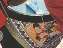 お尻をまくった漁民のおばちゃんの陶製人形がずらりと並び、船や海