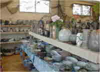 | 陶器の町、益子の目抜き通り にあるこうじんや。 この店で細腕を振るう桜井さんのさっぱりした人柄と開放的な店内の構成が人気で来客が絶えません。 一般客の他、全国の町の陶器屋さんからの注文も多い。 ご主人は釜焼きの達人。 2年前から息子さんも手伝う ようになり頼もしい限りです。 |