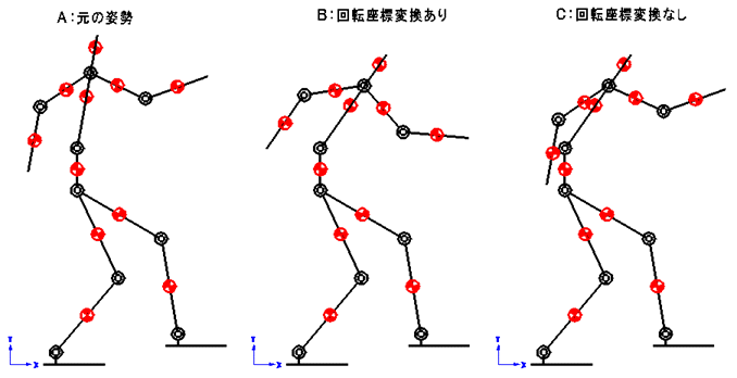■3.腰から上の姿勢について回転座標の変換をしていません。