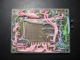 今回ご紹介したマザーボードは、汎用的な開発環境を作ることを目的としています。AKI-H8/3052Fマイコンボードの機能を外部に取り出すためにコネクタに立ち上げただけなので、色々と動作させるためには用途に合わせて外部回路を組む必要があります。なお、外部回路のユニバーサル基板も今回のマザーボードと同じものを利用すれば、スペーサによって2階建て、3階建てに重なることができて、収まりもよくなります。 |