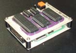 大学4年生頃になると、ようやくアルバイトでパソコンが買えるようになりました。NEC9801互換のEPSON製です。その頃になると、パソコンの拡張バス用ユニバーサル基板でROMライターもどきを作り、テキストエディタで打ち込んだ16進表記のマシン語プログラムをRAMに書き込むツールなども自作できるようになりました。その頃にはEEPROMなる電気的に書き込み消去が手軽に行えるROMも出始めていたため、自作のROMライターで書き込んで、マイコンボードに載せ替えるといったことも出来るようになっていました。