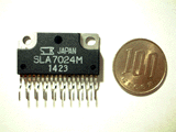写真はユニポーラ型のステッピングモータを駆動するためのICで、サンケン電気製SLA7024Mです。こちらも日本パルスモータさん経由で購入し、価格は1,200円でした。 モーター電源電圧46Vまで、出力電流は1.5Aまでです。 |