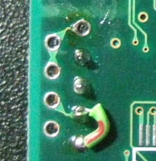 とならんでいるため、3ピン分を並べるには4:DTRが邪魔です。 しかし4:DTRは8:CTSと擬似ハンドシェイクのためにパターン上でショートされているだけなので、5:GNDと接続してしまって、4:DTRをGND端子にしてしまいます。これにより、3ピン分を並べることができます。その様子が上の写真の右側です。