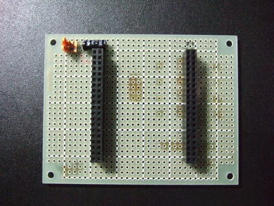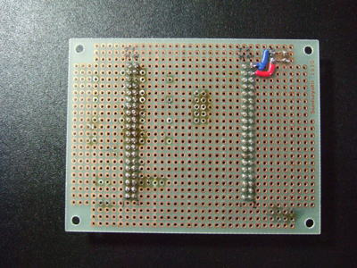 先ずは電源を入れないと話にならないので、以下のようにあり合わせのユニバーサル基板で電源を供給することにします。