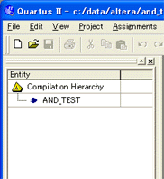 1−10. Wizardを終了すると、QuartusⅡのメイン画面上の左側に、作成されたTop-Level Entity名が表示されます。 |