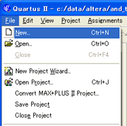 ところで、「操作概要をご紹介しましょう」などと偉そうなことを言ってしまいましたが、実はQuartusⅡWebEditionについて今回ご紹介すること以外は、何も知りません!(^^;; つまり、力弥が知る全てのことをご紹介することになります。でもそれは、QuartusⅡWebEditionの持つ機能の最低限だろうと思うので、「概要」と言ってしまいました。