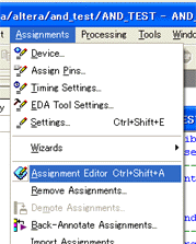 ところで、入出力ピンの番号は、上記のようなピン番で良いのでしょうか? これから基板を作るのであれば、これに合わせた配線にすれば良いのでしょうが、すでに基板が出来上がっているのであればそうも言っていられません。そもそも、QuartusⅡの気まぐれに付き合わされるのは御免です。そこで、ピン番号を指定してあげることにしましょう。