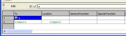 4−2. 次に、表の上にある横長のエリアの<<new>>をクリックします。すると、VHDLのソースファイルで宣言した入出力端子の一覧が表示されますので、そこから a を選択してみます。