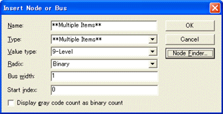 5−11. 先ほどのInsert Node or Bus画面のName欄とType欄に**Multipul Items**と表示されていることを確認して、OKボタンを押してください。 |