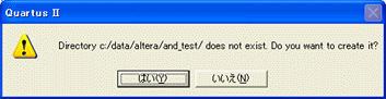 1−4. 予めプロジェクトフォルダを作っていなかった場合、1−3.で入力したフォルダを作成するかどうかの確認窓が開きます。ここでは「はい」を選んで先に進みます。 |