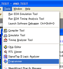 さて、いよいよ実際のCPLDデバイスへのダウンロードです。しかしその前に、ダウンロードケーブルの設定をしておきましょう。この設定は一度やっておけば、他のプロジェクトでも有効になります。利用するダウンロードケーブルは、17.ALTERA ダウンロードケーブルで製作したByteBlasterです。
