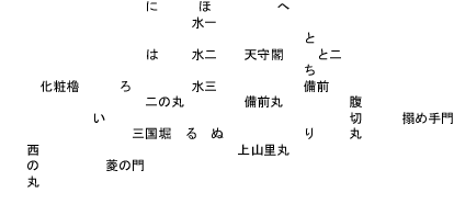 そこから、備前門へ行き、腹切丸へ行き、そのままちの門、との門まで描いて、