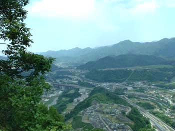 岩殿山城から大月市街を望む