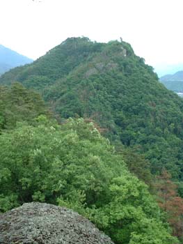 冑岩から岩殿山城を望む