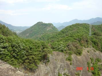 向こうに見えるのが岩殿山城です。