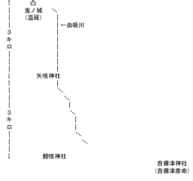 * このとき温羅の目から流れ出た血で川が真っ赤にそまり、以後その川を血を吸