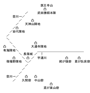 勝頼公が設楽が原に打って出ていく際に、この5つの砦を長篠城の抑えとしたに