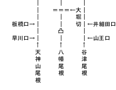 鉄砲矢馬を過ぎ、「*」印のある大堀切に。