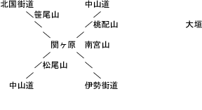 ここで関ヶ原のおおまかな地図を書くとこうなります。