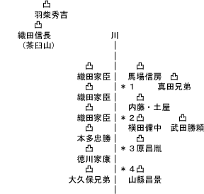内藤修理亮昌豊、横田備中守綱松、五味与三兵衛貞氏、真田源太左エ門尉信綱、