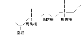 でも、いろいろな資料からこの馬防柵は3段構えだったといわれています。
