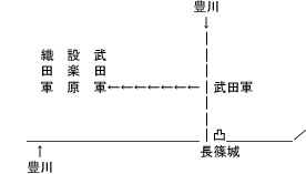 ただ、直接長篠城に向かったところで、武田軍との間には豊川があるので効果