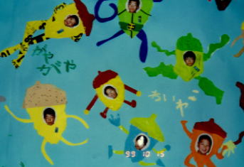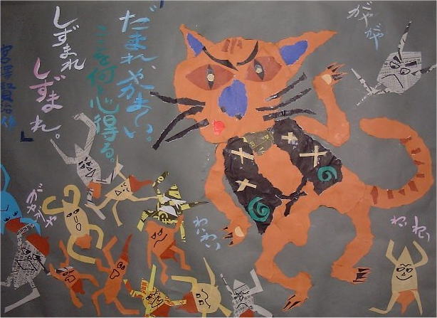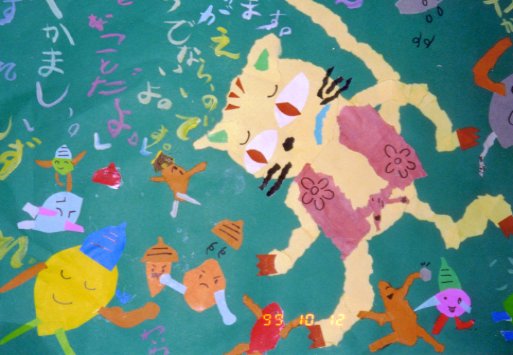 6年生のクラスの子どもたちで作った共同製作の「ちぎり絵」です。およそ一時間ほどで仕上がりました。教室の正面に掲示しました。ひとつひとつのどんぐりには、一人一人の子どもの顔写真を貼りました。詳しくは「TOSSトークライン」(NO.164)を参照してください。酒井先生が紹介してくださっています。
