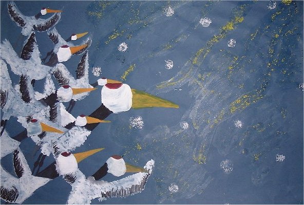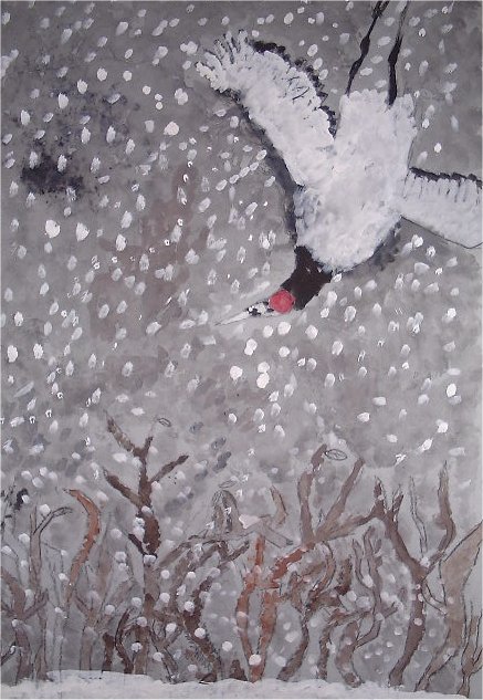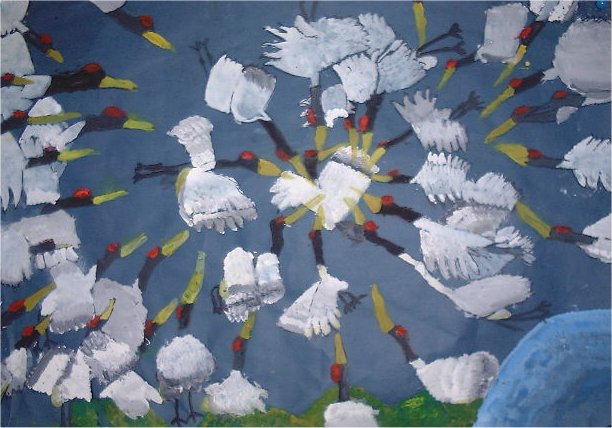 作品名〜物語の絵その1「百羽のつる」 4年生の作品です。