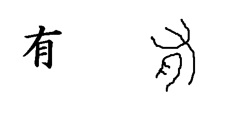 1.「有」という漢字は,昔はこのような字を書きました。(板書)「自分の物として持つ」ことを表した字です。ところで,この字にある「月」はお月様の月ではありません。「ナ」は「持つ」という意味ですが,何を持っているのでしょう。A貝,B肉,C石のうちのどれでしょう。