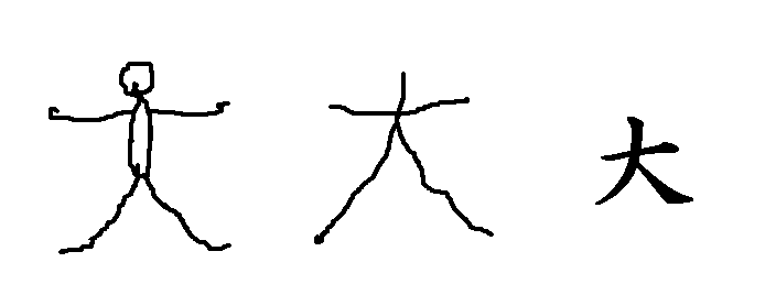 4.「大」は,両手を広げて立った形からできました。