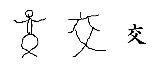 6.足を交わらせる様子から「交わる」という字になりました。交通や交差点の「交」です。学校の「校」にもこの字が入っていますね。これは,先生と子供たちが交わって教えたり習ったりするところという意味です。