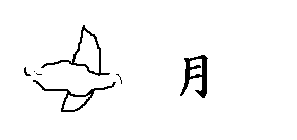 4.雲が少しかかったお月さまです。「月」という字が出来ました。