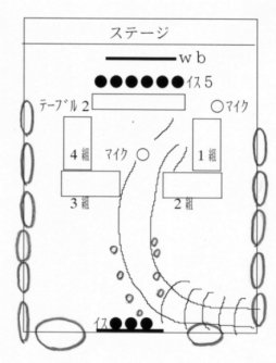 ・2グループに分かれQ&Aの態勢になるように指示する。