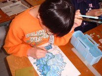 対象は6年生、年度初めの図工の授業開きで製作しました。(計3〜4時間)