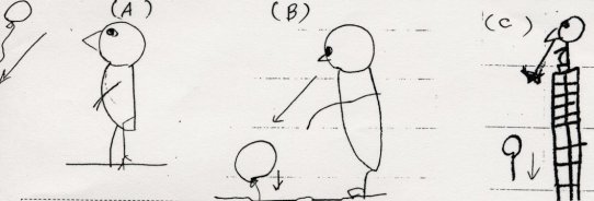・Cは、おかしい。矢印が上下にあるのは、どういうわけか?風船が空中に浮かんでいるように見える。文にあっていない。