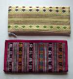 ↑木片の組み合わせによる伝統的絵画 ![]() ![]() 少数民族手織りの布による財布。