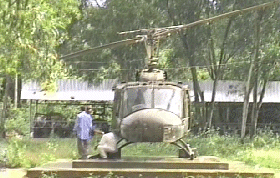 トンネルを出たところにある米軍のヘリコプター。