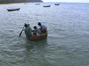 おわん型のボート。イカ釣りや波打ち際で