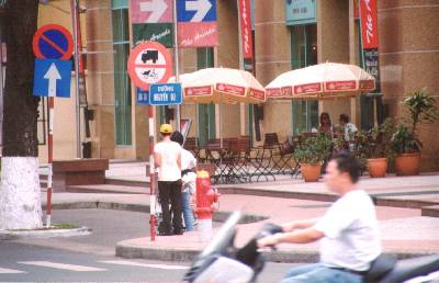 昔のサイゴン米国大使館後に建つ領事館にて。