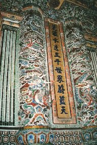 廟内部はベトナムの伝統工芸である、陶器片によるモザイクで装飾されています。