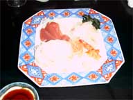 Se n縊 tiver bolinha de arroz e s・tiver as fatias de peixe, chama-se"SASHIMI". Isto tamb駑 ・muito bom. Um amigo meu Mexicano viu "SUSHI e SASHIMI" pela primeira vez, e disse-me que tinha ficado mal-disposto s・de ver. Mas agora, ele come-os com muito gosto. Quero recomendar aos portugueses que os provem. Se o peixe n縊 for fresco, n縊 ・poss咩el fazer SUSHI e SASHIMI. Por isso n縊 se preocupem!