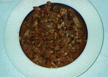1.鶏の臓物を酢を入れた水でよく洗う。