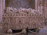 王冠をかぶり横たわっている。この記念像はアルコバサのサンタ・マリア修道院に